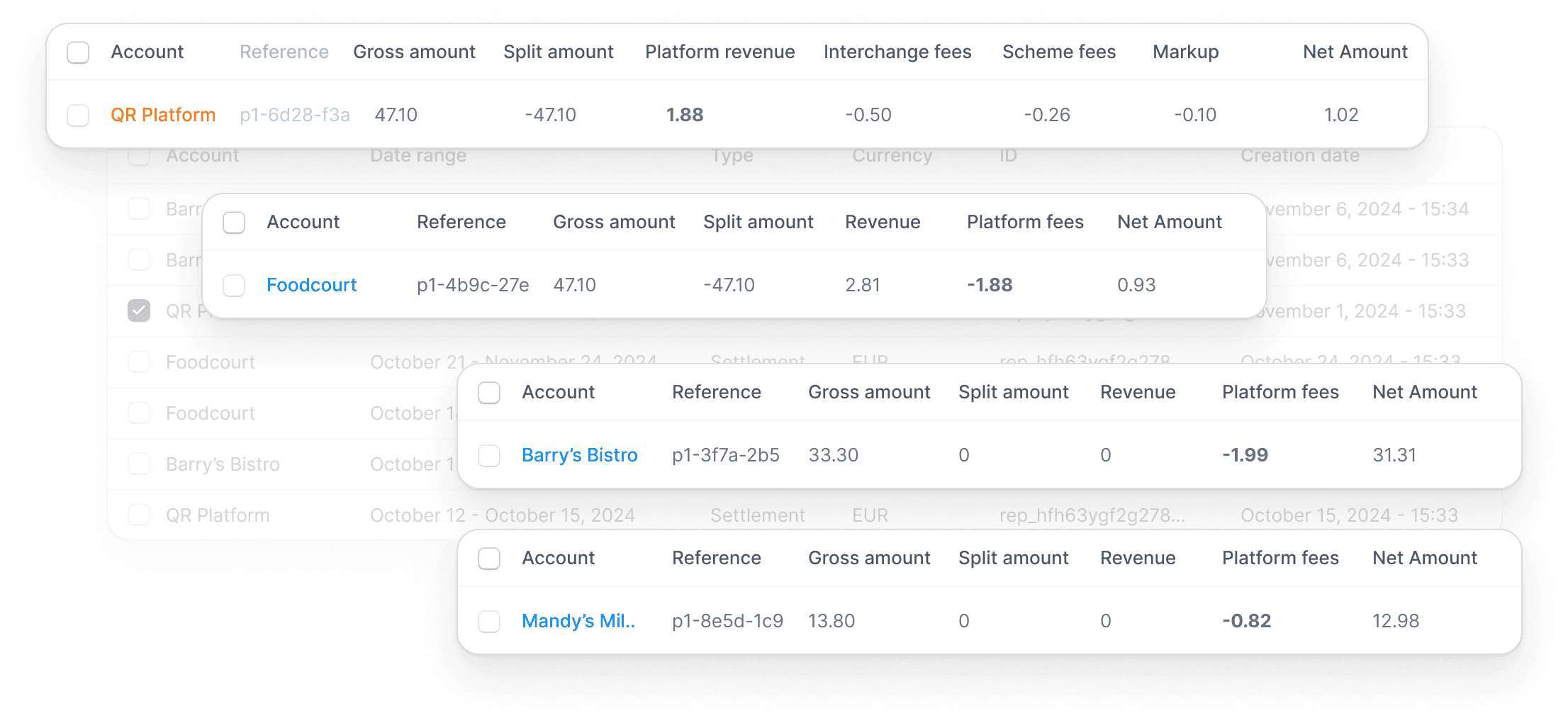 Automate your reconciliation with granular, transaction-level data. Get full visibility into fees, payouts, and balances without workarounds or third-party integrations.